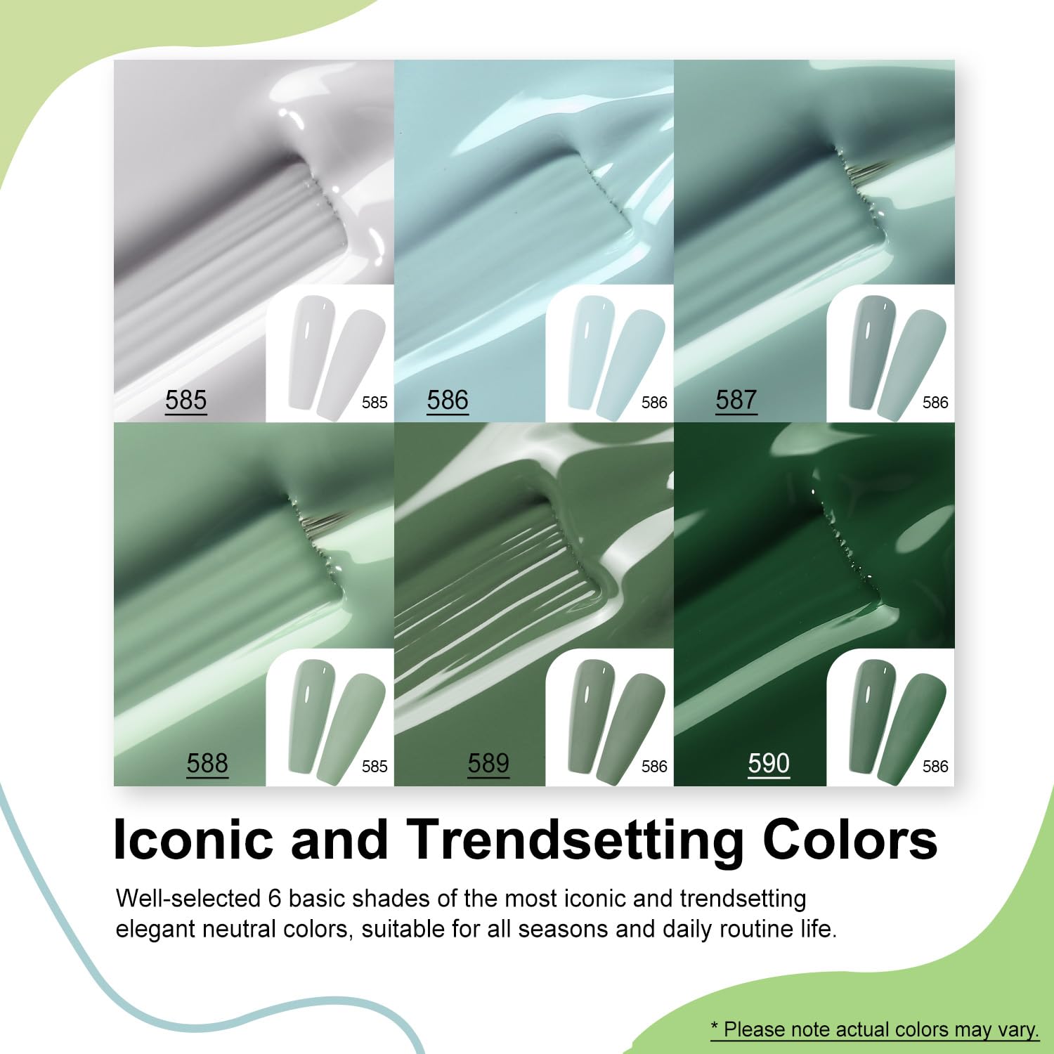MEFA Green Gel Nail Polish Set 6 Colors, Sage Green Mist Blue Light Grey Dark Olive Shades Earth Tone Gel Polish Matcha Avocado Soak Off Nail Art Design Home Manicure Kit Gifts St. Patrick's Day