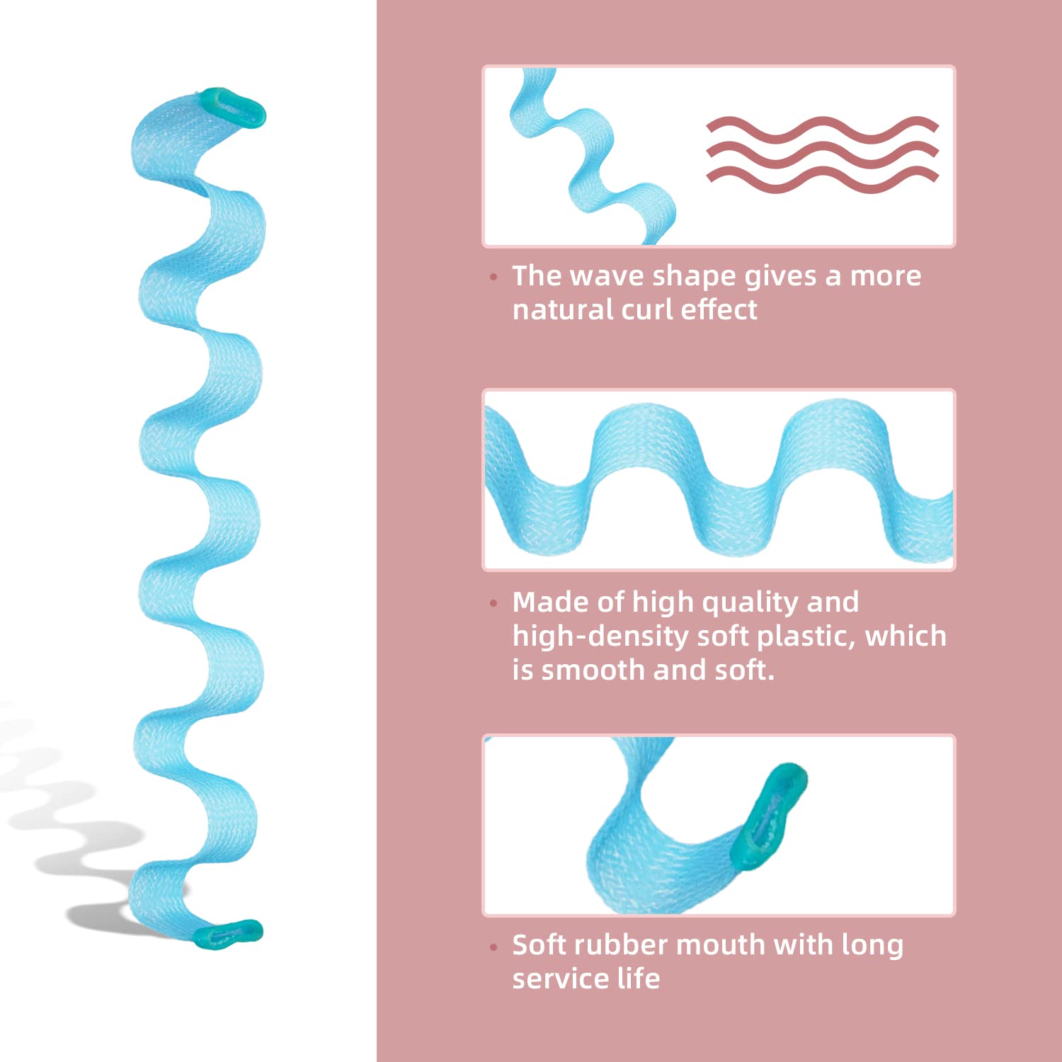 30pcs Wave Curlers Rollers Kit with Styling Hooks, Heatless Spiral Curls for Medium and Long Hair 17.8(45 cm)