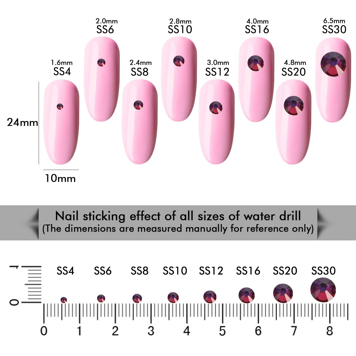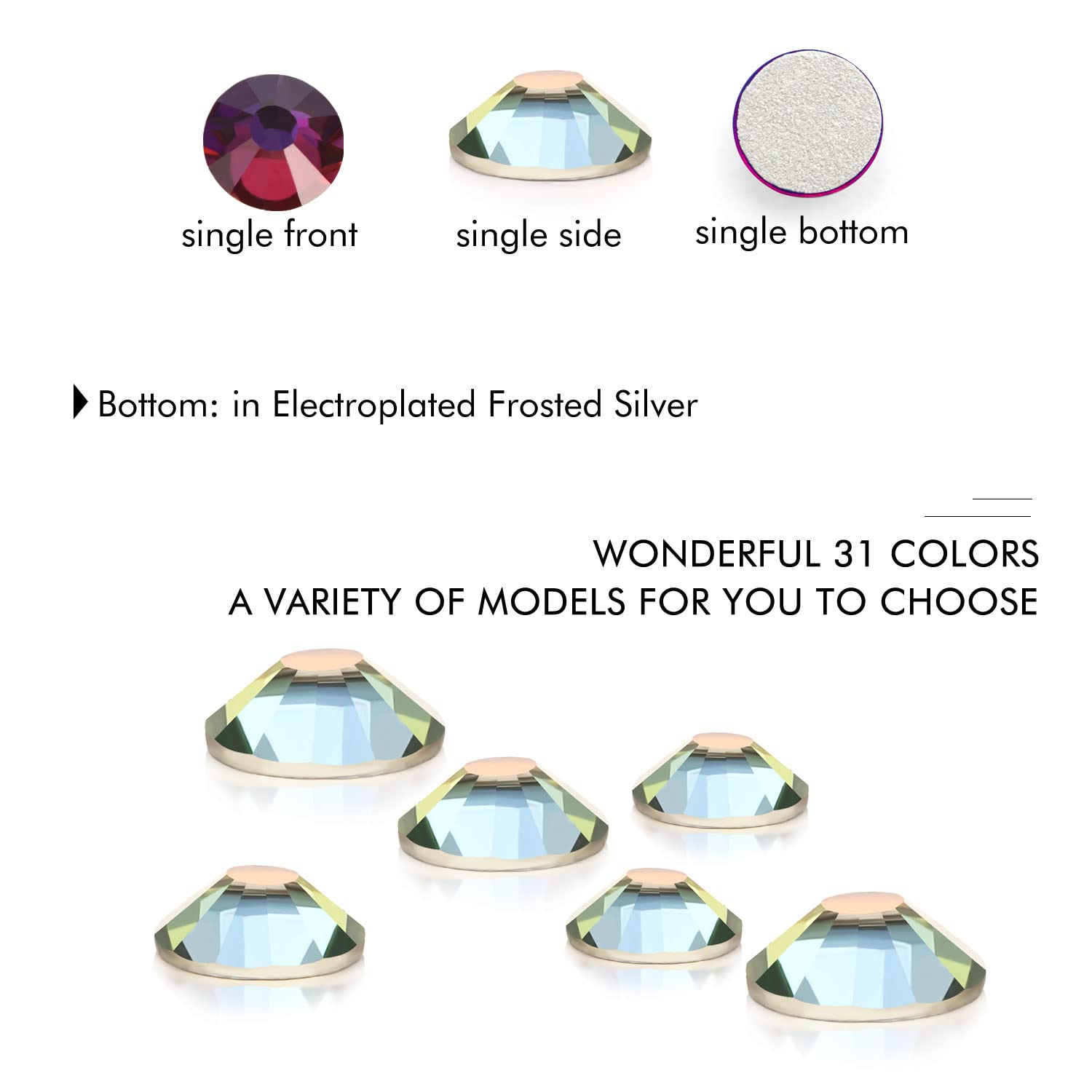 - Different Sizes Available:These rhinestones for crafts come in a wide range of sizes (1.6mm, 2mm, 2.4mm, 2.8mm, 3mm, 4mm, 4.8mm) to suit your different needs