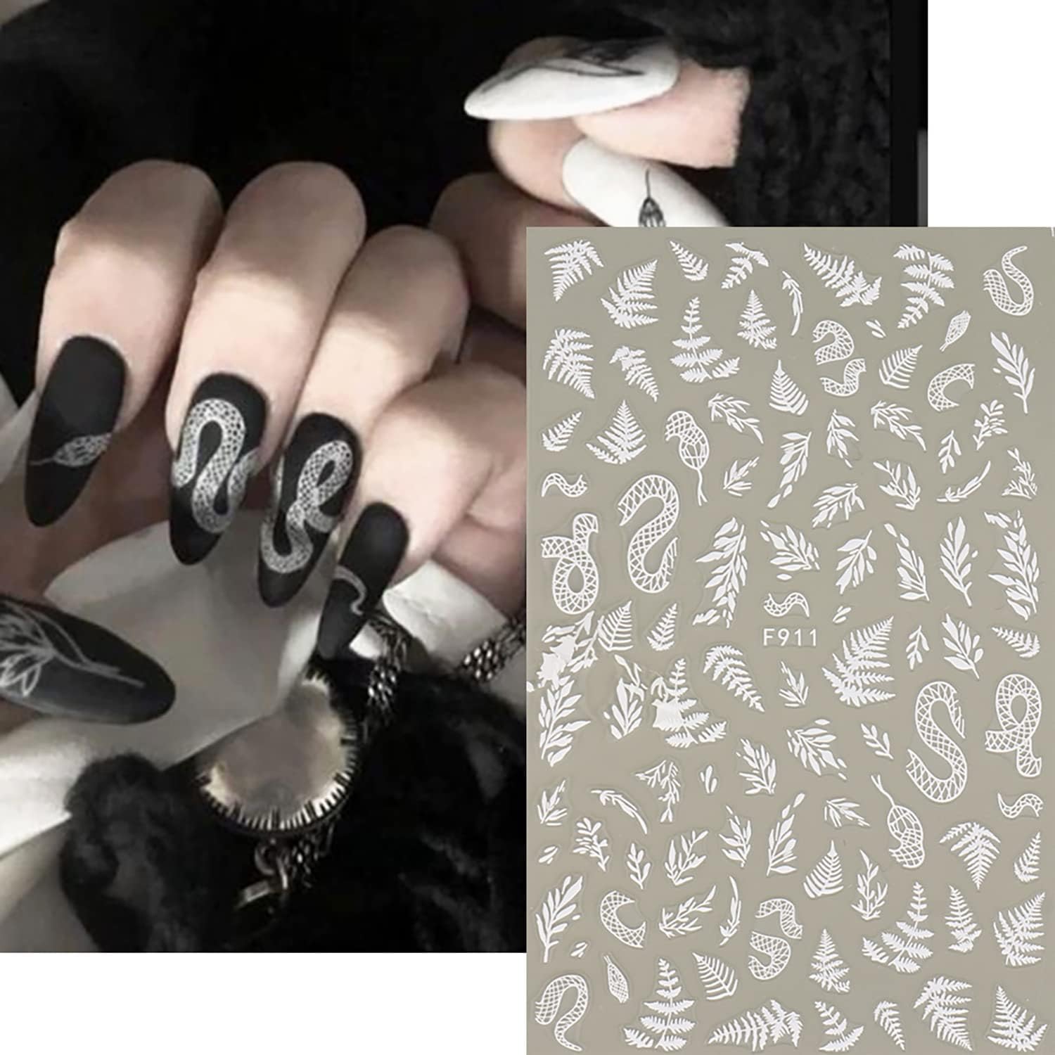 - Packaging: You will receive 7 nail stickers with white nails, including lines, stars, moon, flowers, butterflies, snakes, and other patterns. The quantity is sufficient and the style is rich to meet your daily use and replacement requirements.