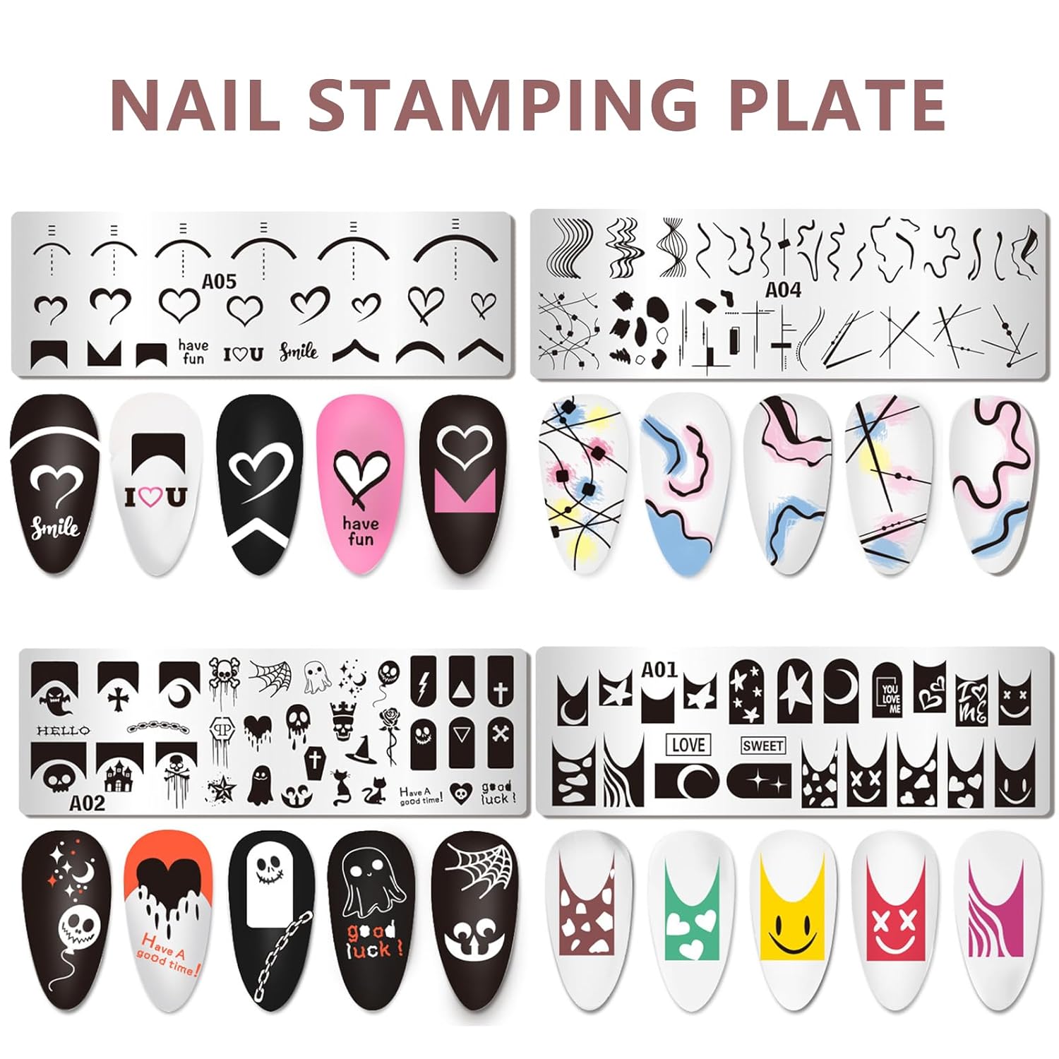 - Various designs nail stamping plate: AddFavor nail art stamping plate engraved with french pattern, rabbit, heart, leaves, leaf, butterfly, flower, geometric image etc. Beautiful and cute image for your to create stylish nails without painting and drawing