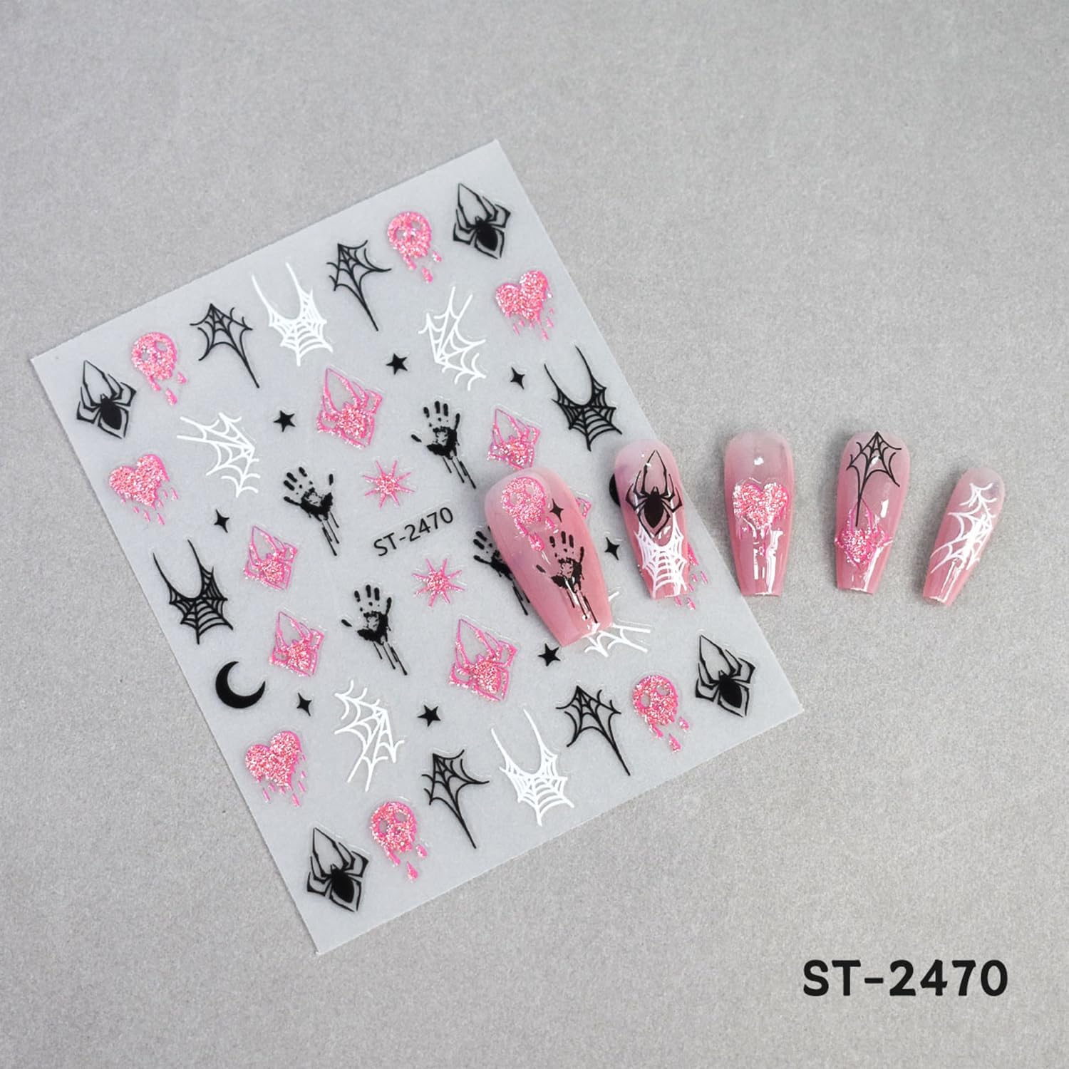 - Quantity: You will get 6 sheets of Halloween soider nail art stickers, including bow and spider web pattern designs, not easy to fall off or fade, can easily create a variety of themed nail art